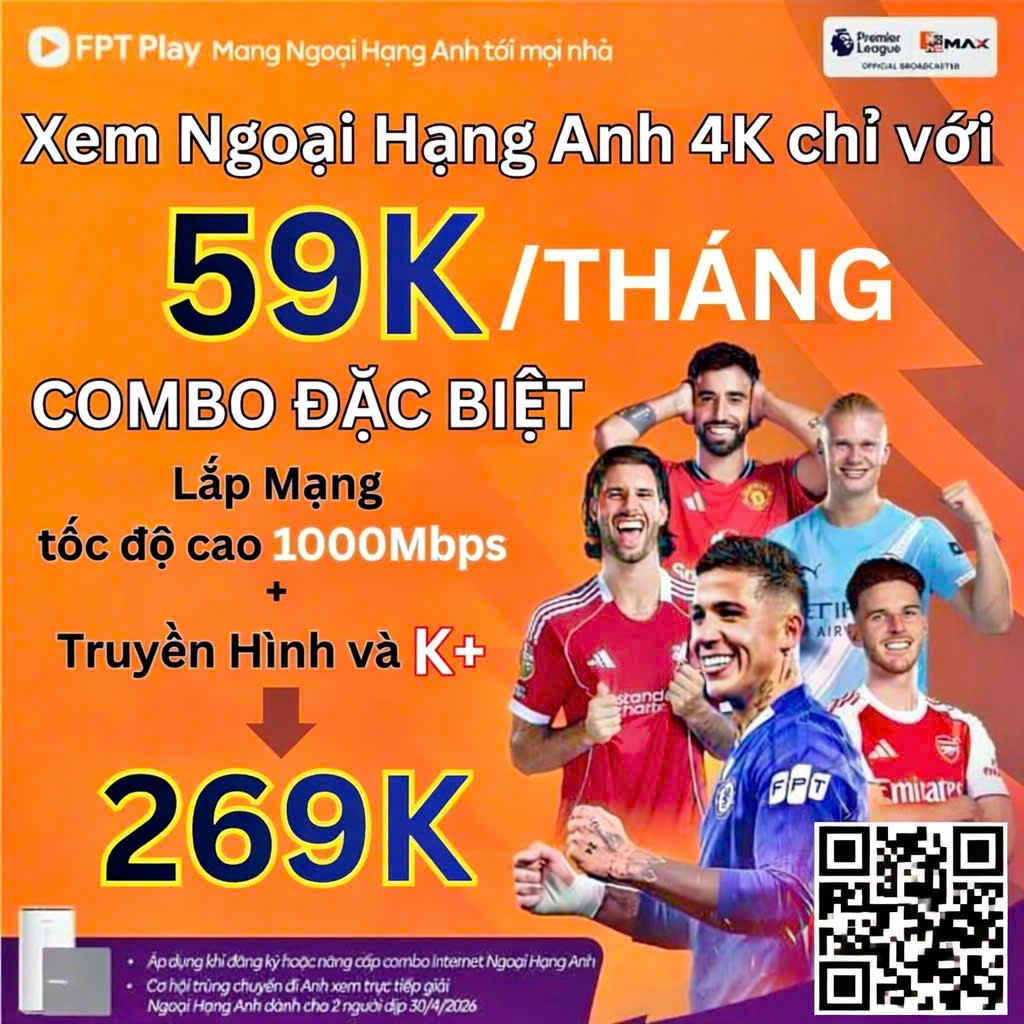 Chỉ với 59k/tháng,Khách hàng được sống trong thế giới bóng đá tuyệt đỉnh của Ngoại Hạng Anh.